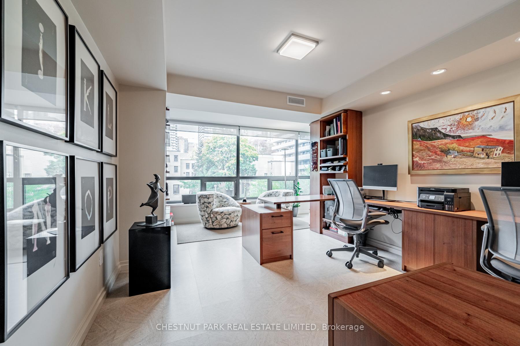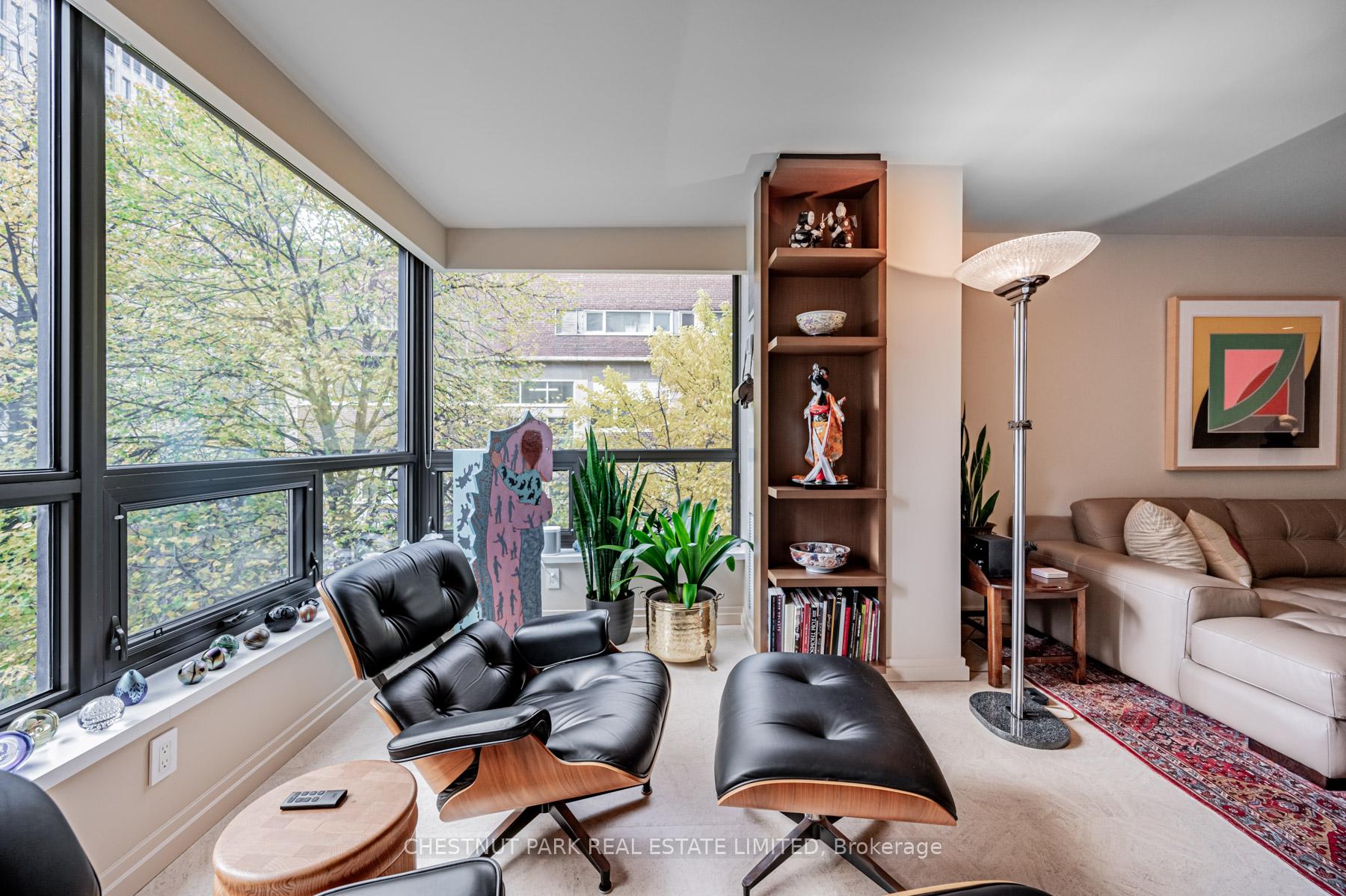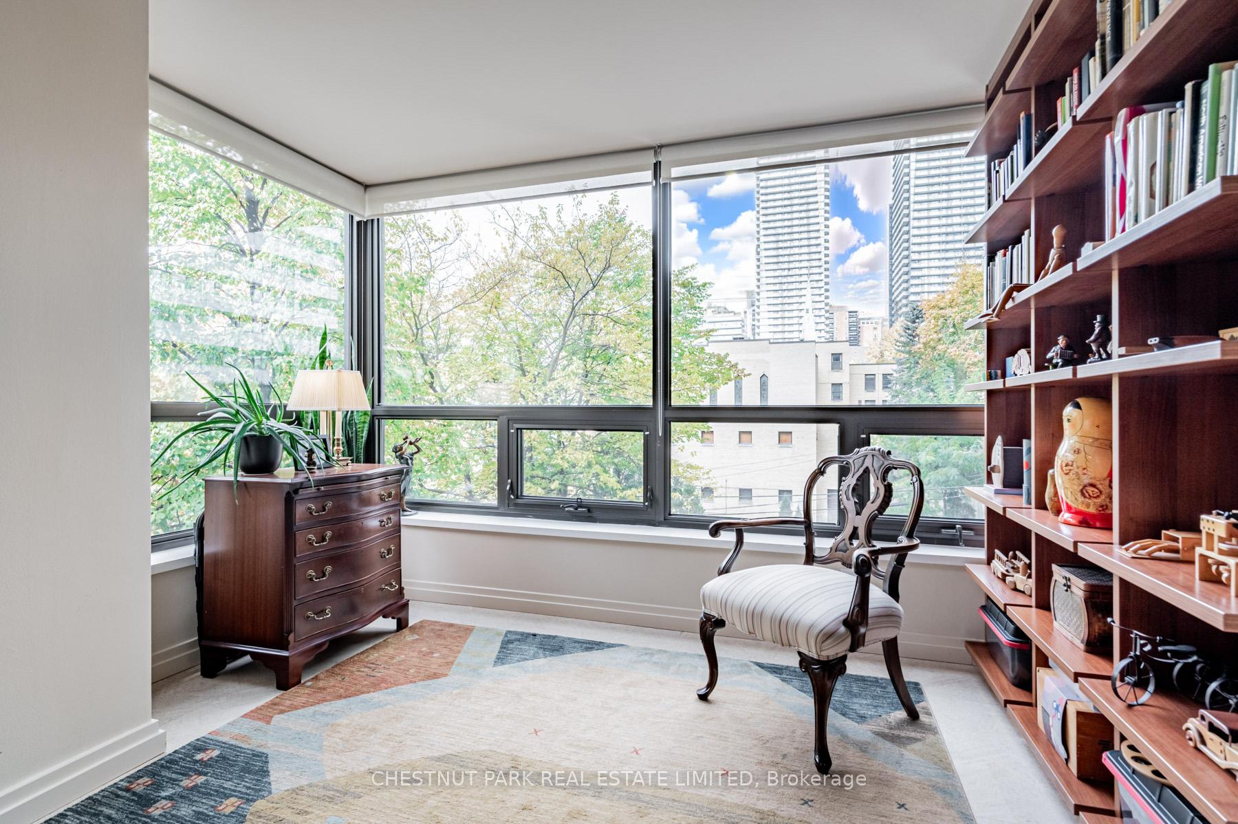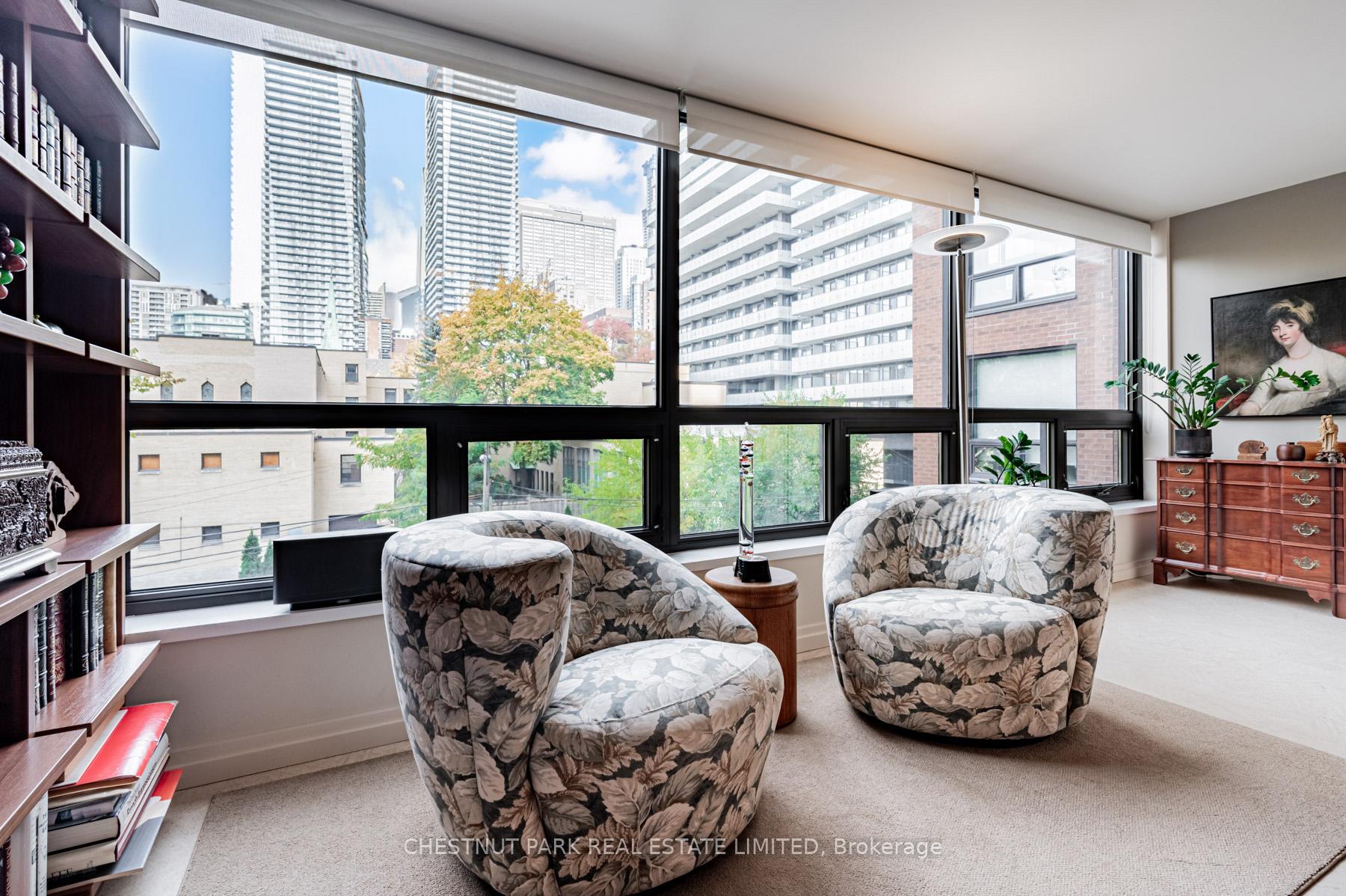 JANET LINDSAY, #1 FOR 25 YEARS (1993 – 2016, 2018 in 2 companies) PROUDLY PRESENTS: Bespoke glamour with light filled south, west and north exposures that just dazzle in this bright and versatile, almost 2,000 sf, 2 Bedroom plus den that can be used as a home office or 3rd Bedroom. Three open concept sitting rooms and the rare windows on 3 sides are filled with natural light by day, or sparkling drama at night. Sophistication, convenience and smart practicality highlight this impeccable, stunning renovation of 1,979 sf providing a growing family or chic urbanites an unparalleled blend of comfort and refinement. Curated to perfection, it features tall ceilings, halogens, big walls for art, large windows for airy views and designer laminates highlighting the calm beauty, sparkling durability and impressively appointed finishes, making this a rare opportunity and exceptional showcase. The Living/Great Room and south-facing open concept Sitting Room, adjoining the separate formal Dining Room, are ideal for cocooning or large-scale entertaining. The gourmet Kitchen, with its under-cabinet lighting, full size appliances, stone countertops and dedicated pantry, is splendid for culinary enthusiasts who will love the open waterfall bar to the Dining Room ensuring that the cook is an integral part of all activity. The primary Bedroom, a haven of tranquility, boasts a walk-in closet, spa-like bath and a walk out to the Sitting Room. The second or guest Bedroom has spectacular proportions embracing the wrap- around windows of its open Sitting Room, with easy access to the stylish 4-piece bath. The 3rd Bedroom doubles as a trophy home office with super Built-ins, 2 desks and adjoining tree-framed, open-concept Sitting Room. This is an unparalleled vibrant location, steps to Queens Park, Mink Mile with its international boutiques & top restaurants, U of T, Metropolitan University, UHN Hospitals (4), lush parks, world-class museums and galleries, indoor food emporiums and 2 subways either north/south or east/west. Downtown (Eatons Centre) and the financial district are walkable. Simply the very best in quality and convenience, this offers an unmatched life-style in which to have your dream home!