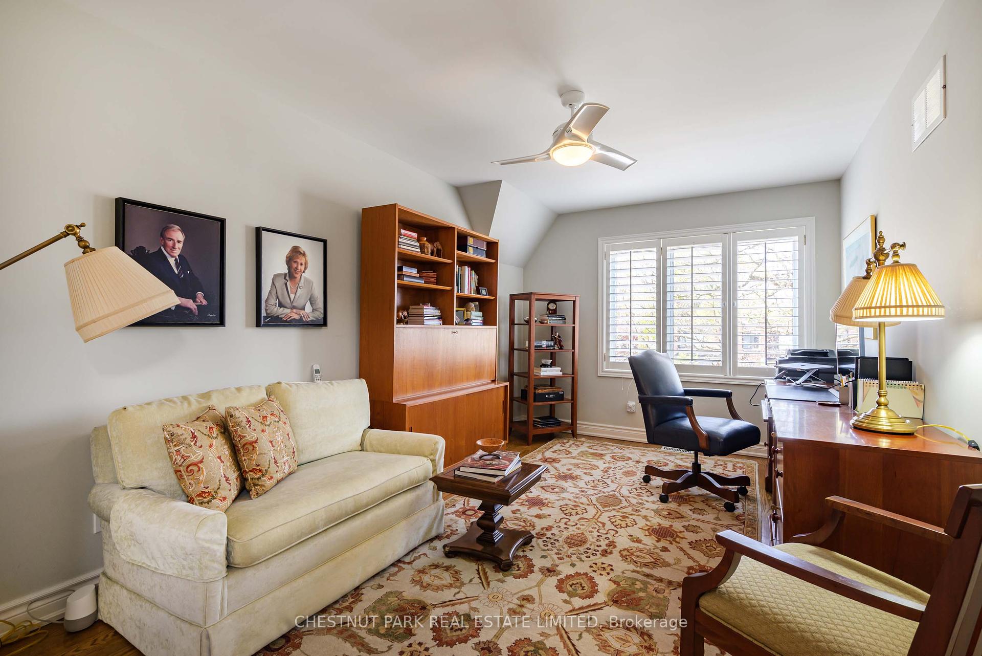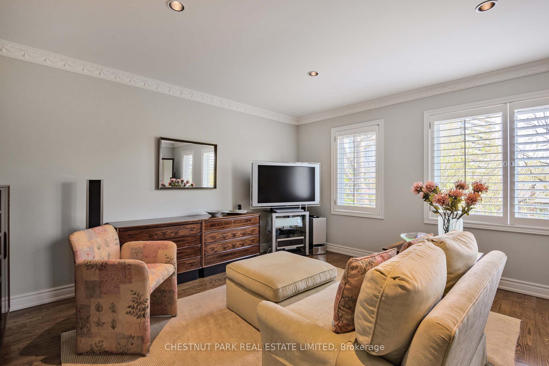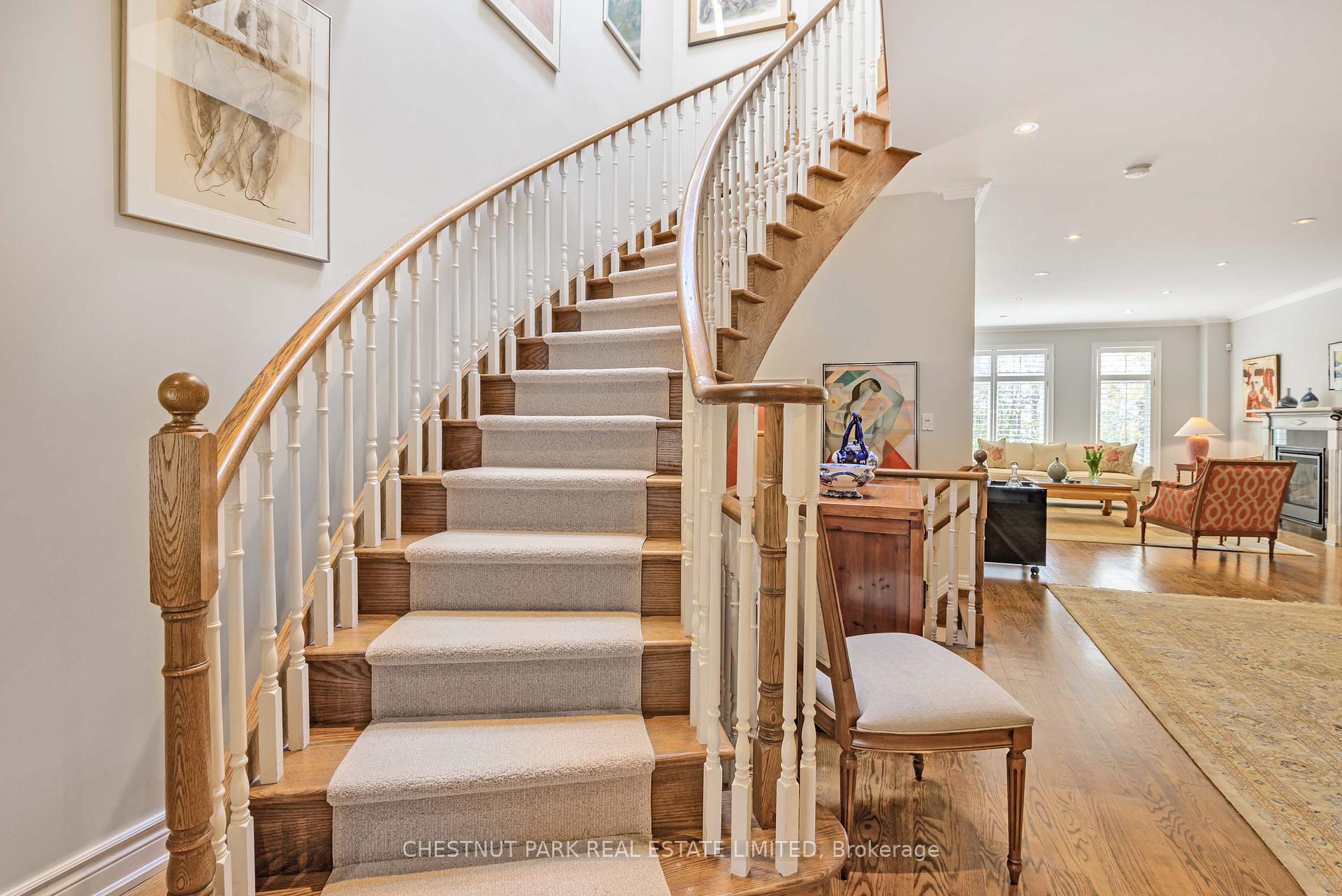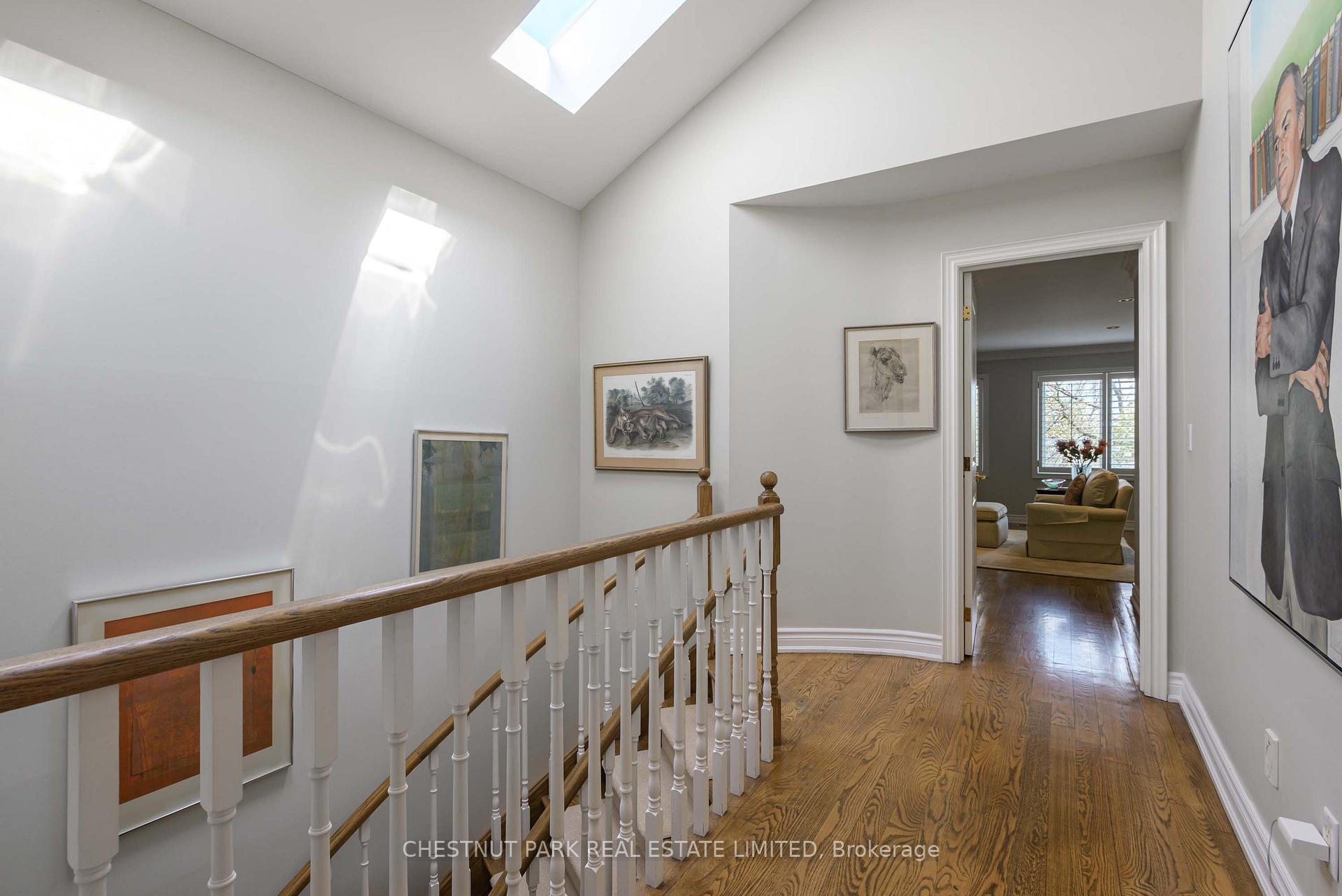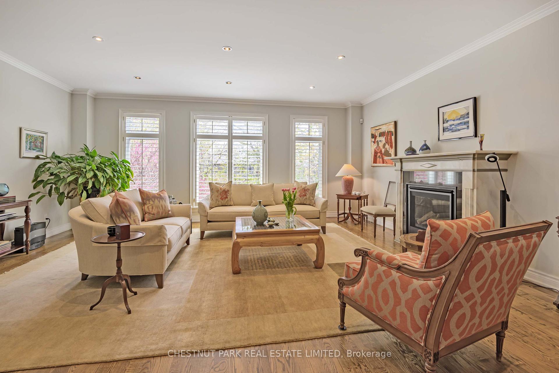 Dazzling curb appeal welcomes you to this detached, striking, exceptionally attractive detached residence, impressively set well back on a wide, south facing 27 by 134 ft lot & ideally situated in the most desirable block of this picturesque, tree-lined avenue just west of Duplex. The superior construction quality & thoughtfully designed layout of this timeless & captivating stunner are immediately evident, from the stone coins framing the front to the remarkable abundance of natural light streaming through walls of sparkling double pane windows, the tall clgs, gracefully arcing skylit staircase, cornice mouldings, solid wood doors, gleaming hdwd & the sensational open-concept atmosphere that greets you upon entry. Expansive principal rms & a versatile approx. 3500 plan include a grandly scaled living/great room with gas fp; a generous DR easily hosting 12; & a bright eat-in kit with pretty, projecting bkfst area. Upstairs, 3 well-proportioned BR await, including a sumptuous primary suite oasis encompassing a comfortable sitting area & a lg ens with sep tub & shower. The w/o lower, featuring dramatic clg height, offers a fantastic media rm/potl 4th BR &/or additional living – ideal for guests or a home ofc + French drs. With four baths, a b/I gar with direct interior access & roomy pkg for 2 cars in the bricked priv dr, convenience abounds. The privacy & size of the sunny, deep, fenced & trellis-clad gdn with with gas line to handy BBQ patio, retractable electric awning & stg shed are ideal for entertaining or relaxing. Meticulously maintained & treasured by the present owner, who purchased directly from the builder, this home checks all the boxes for stylish living in a peaceful setting, adjacent to Toronto’s prime, most sought-after, exciting midtown hub. Lively & enduring memories will be made here!