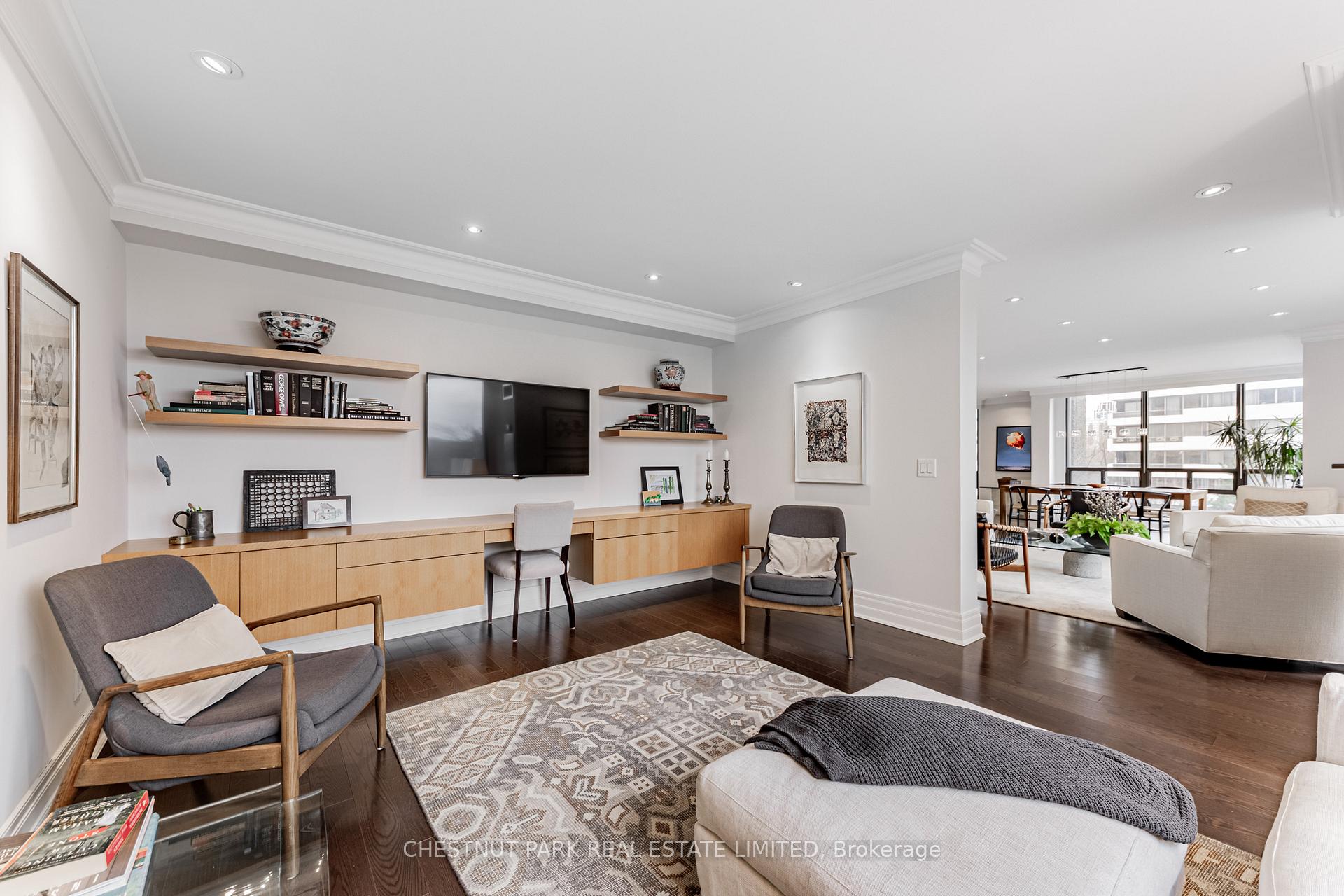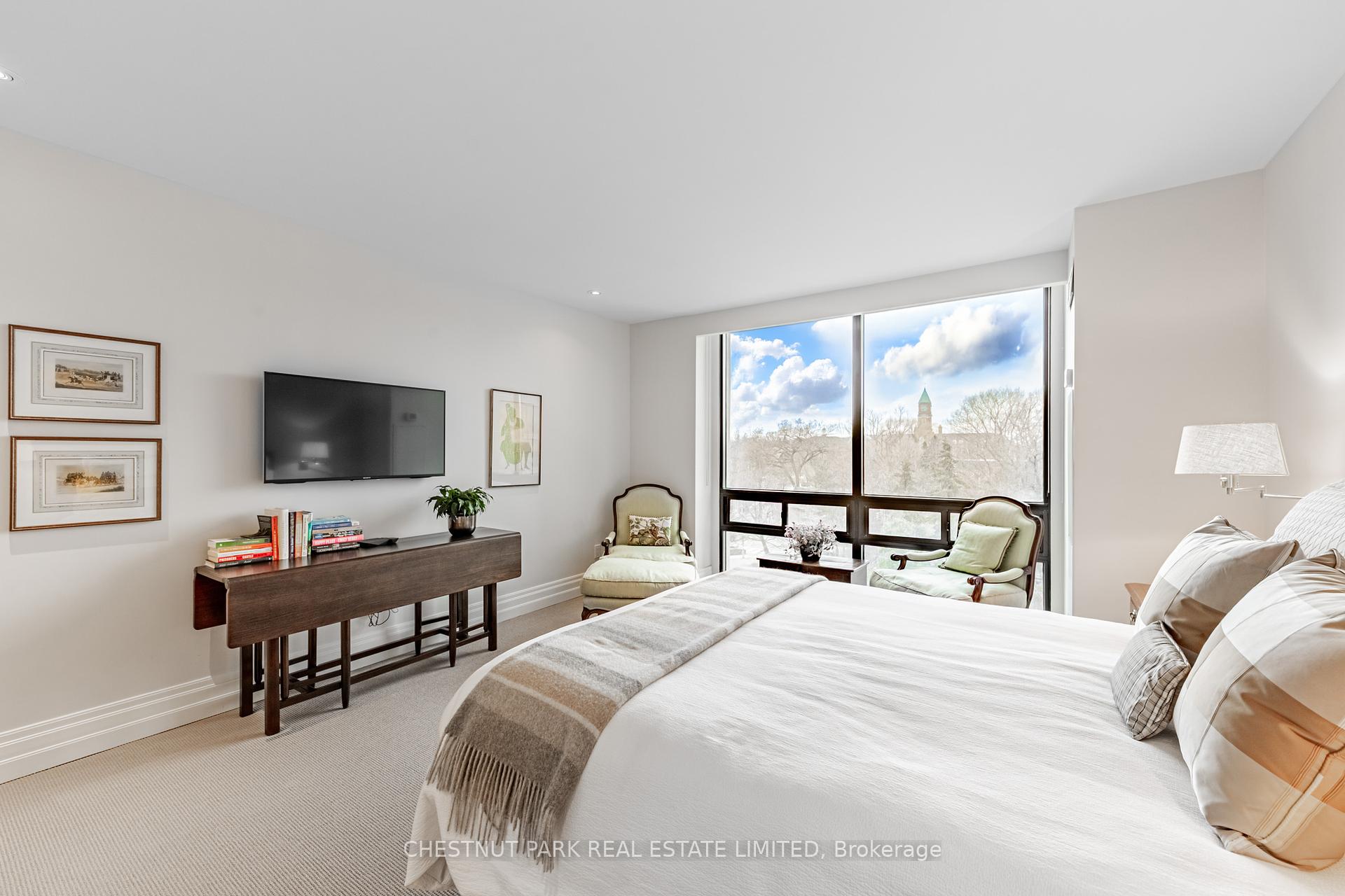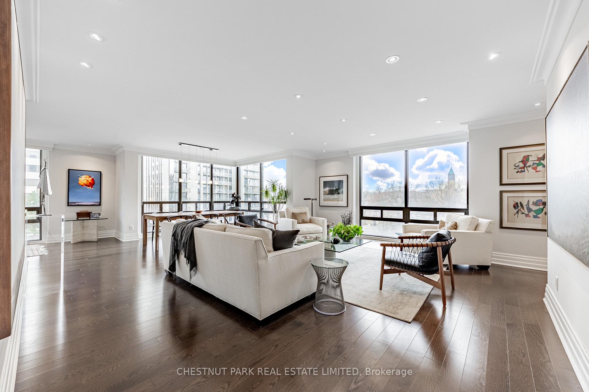 JANET LINDSAY, #1 FOR 25 YEARS (1993 – 2016, 2018 in 2 companies) PROUDLY PRESENTS: Welcome to the quintessential suite for imaginative, glamorous & convenient luxury living in this meticulously renovated showpiece of innovative, contemporary, architecturally inspired design & craftsmanship. Step inside & you are immediately captivated by the view from the floor-to-ceiling, wraparound windows, embracing the park-like campus of UCC sprawling beyond, with its eye catching, iconic Clock Tower. History meets the epitome of modernity here in this breathtaking panorama! Sophisticates, downsizers & professionals will love this wonderfully proportioned open-concept 2 Bedroom plus Family Room/Office (or 3rd Bedroom), gracefully soaring above the tree-top canopies of Forest Hill & Deer Park. Truly inviting and home-size, this prime corner residence will accommodate all you desire, making a transition from home to condominium a breeze. Wood or stone floors, custom sun or blackout blinds on all windows, muted marble-style baths, halogens, vast principal rooms, coffered ceilings, crown mouldings, ensuite laundry, ample built-ins & storage galore, highlight the impressive features here & those most desired by the prudent buyer today. Entertain in style in the ultimate privacy-enhancing floor plan, with its large welcoming foyer, stunning open-concept Living Room, generous Dining Room framed by floor-to-ceiling windows on two sides, spectacular chefs Kitchen with Breakfast Bar & Sitting Area & airy, enchanting Family Room/Office (or 3rd Bedroom), flanked by two king-size Bedrooms each with ensuite baths. The sumptuous primary Bedroom has 2 large Walk-in closet & spa bath off its own entry hall while the unusually large 2nd Bedroom/Guest Suite also enjoys a huge walk-in closet & ensuite. Bathed in natural light, the sparkling day or night views dazzle. Also exceptional are the magnificent grounds, picturesque location & choice services, along with the timeless precast concrete exterior, triple glazed windows, the best visitor parking in any condominium & a high ratio of elevators to units.