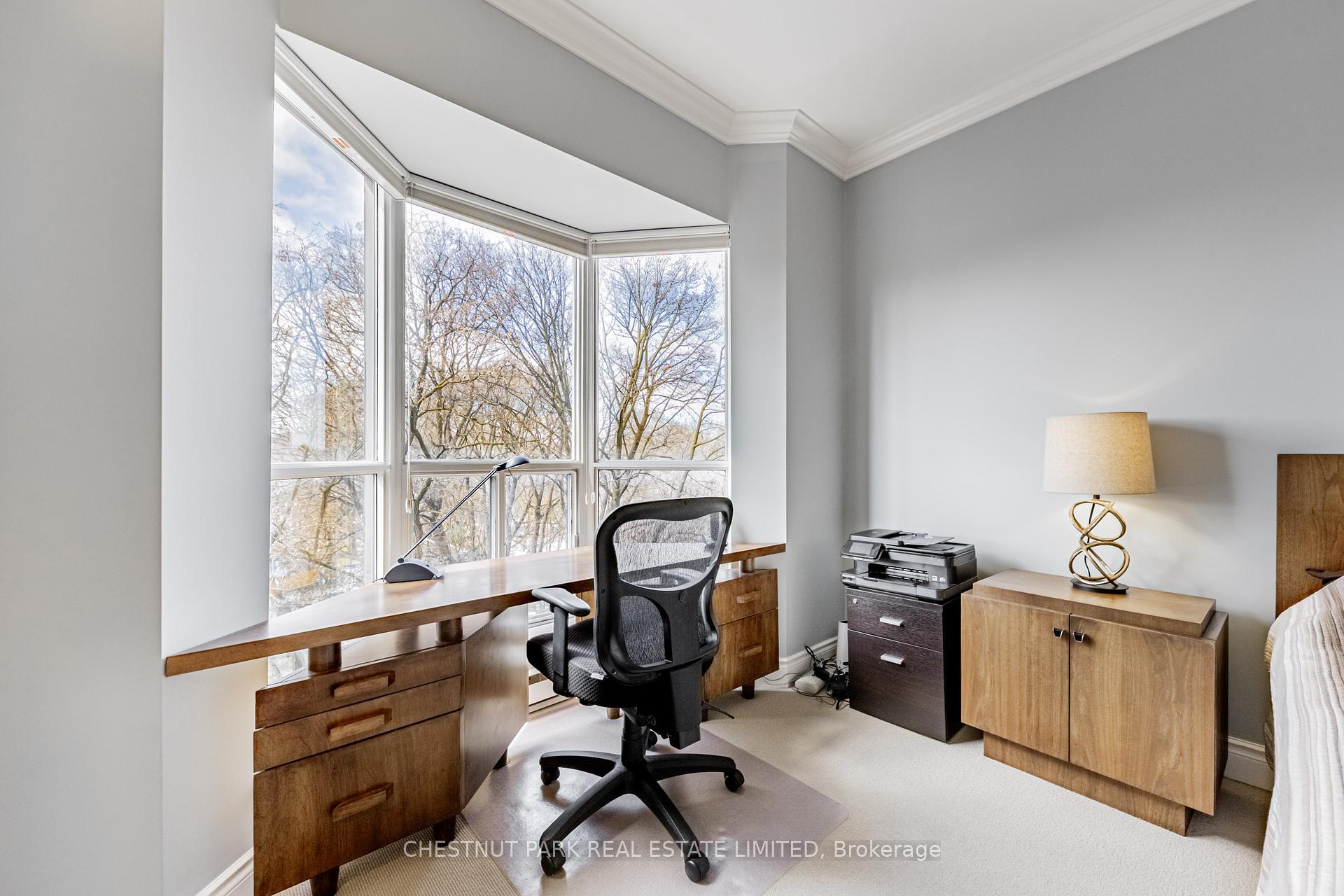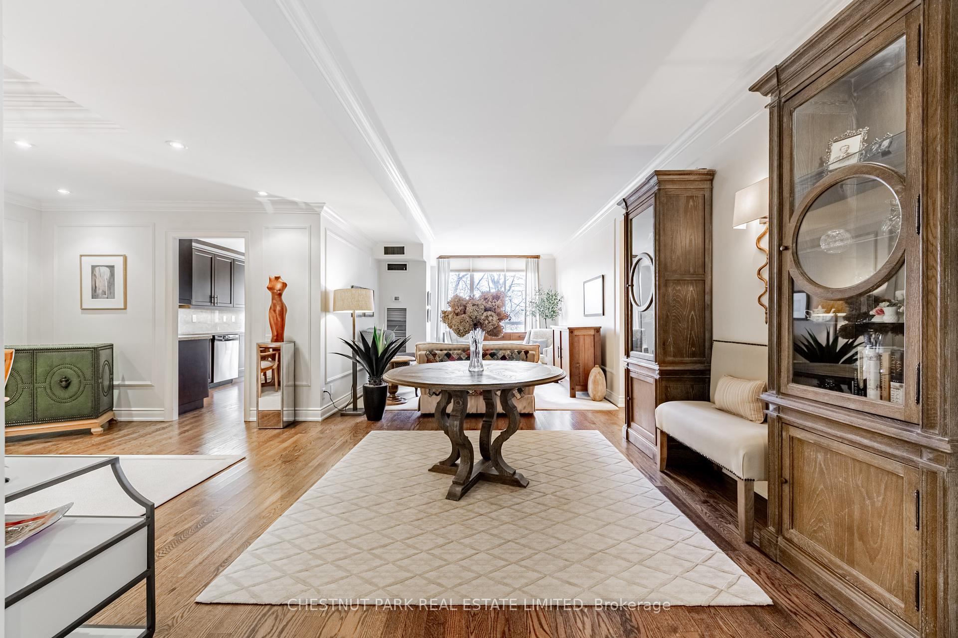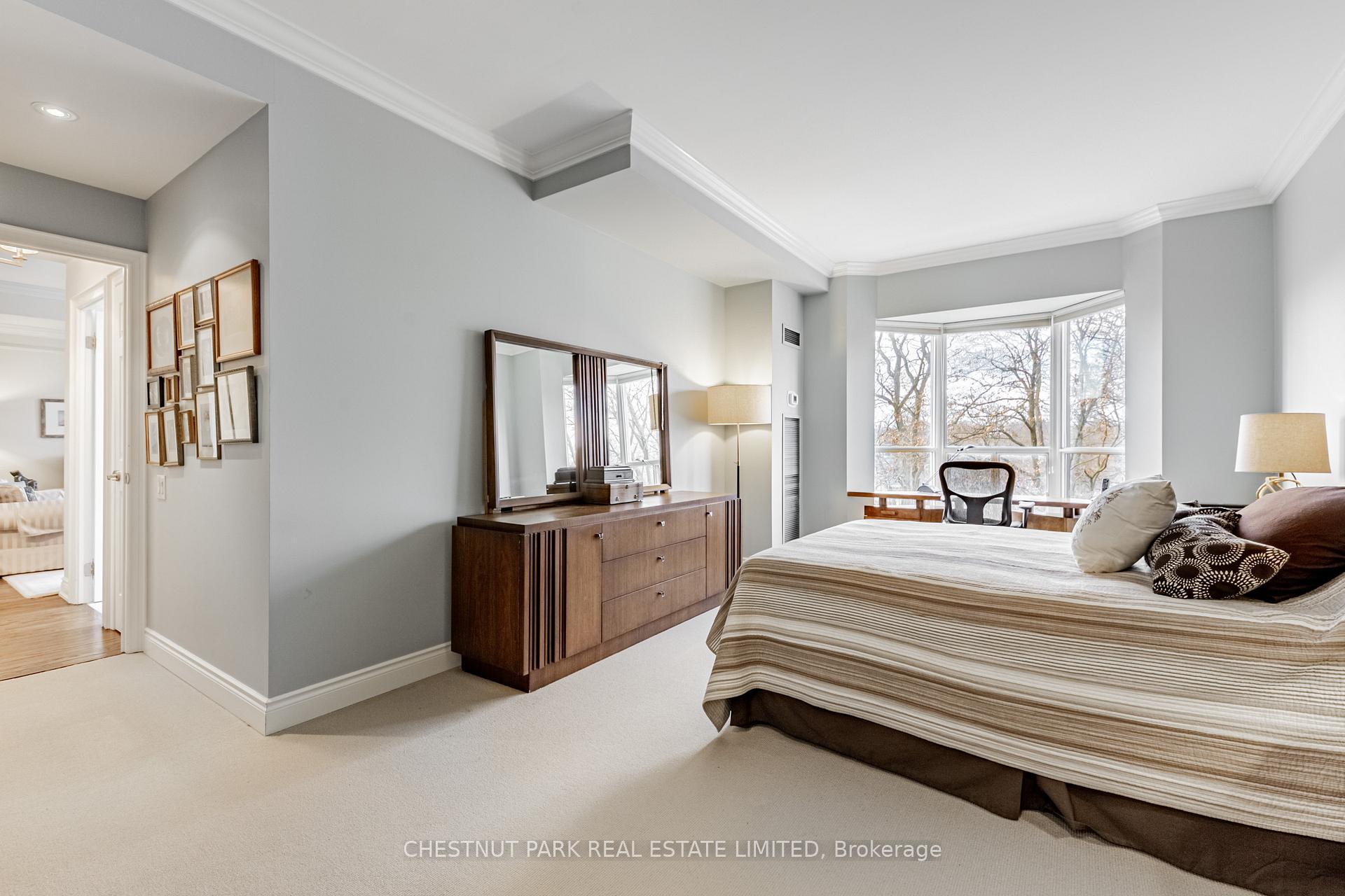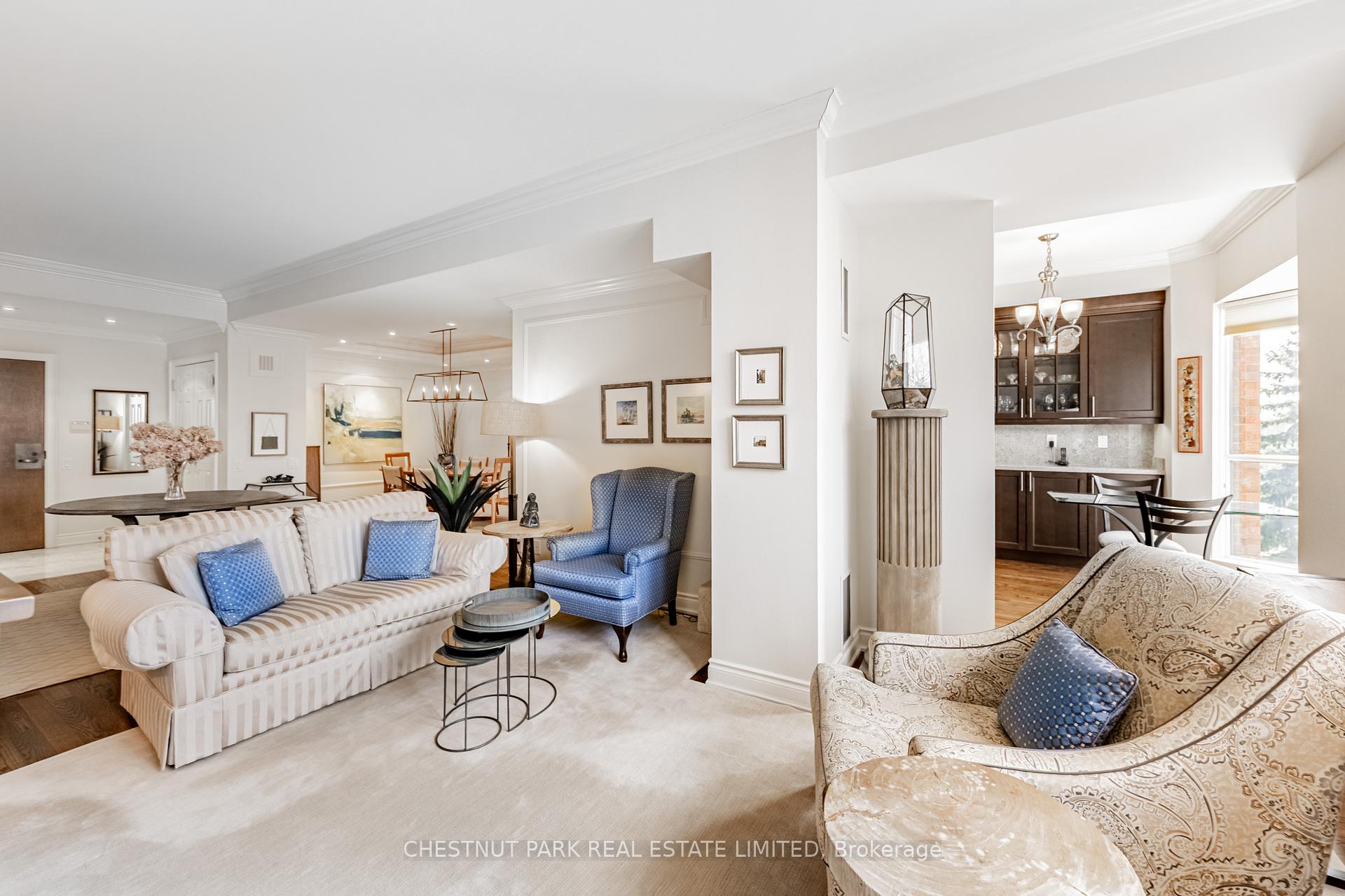 JANET LINDSAY, #1 FOR 25 YEARS (1993 – 2016, 2018 in 2 companies) PROUDLY PRESENTS: Downsizers and professionals have been eagerly awaiting this captivating open-concept, 2 Bedroom with its spectacular and coveted west vistas in every room over the Duplex Parkette. Serene, expansive and bathed in natural light, the exceptional day and night panoramic views enthrall. Designer renovated and truly home-size, this will accommodate all you desire! Luxury abounds in this smart, light-filled & beautifully proportioned layout, with its wood & stone floors, walls of large or bay windows (with custom coverings), marble baths, superbly scaled rooms, ample built-ins and generous storage. The prized floor plan is the ultimate in privacy-enhancing delight with its graceful foyer, stunning open Living Room, adjoining Den (depending on furniture placement), family-size Dining Room (easily seating 10), modern bright Kitchen, Breakfast bay & laundry all separate from the Bedroom wing. Just see the photos for a tiny glimpse of this outstanding home. Convenience, glamour and elegance are treasured in this iconic Lawrence Park landmark. Ideally situated at the vibrant Yonge and Lawrence hub, opposite the lush Alexander Muir Memorial Gardens Park, with its magnificent plantings, woodland trails, tennis and lawn bowling, this quiet mid-rise of just 9 storeys and 72 suites offers exclusivity and superior value in every way. A widely-admired and envied showpiece, the Residences of Muir Park makes transitioning from a large home a breeze. Top-flight building amenities include 24 hour Concierge and security system, visitor parking, gym, manicured landscaping, indoor pool, party room and rooftop deck all just an easy stroll from the lovely boutiques, elegant shops and fantastic subway system. The subway easily whisks you north or south and the portico-like drive provides covered protection in all weather. With 2 car parking (1 with EV charger), substantial visitor parking and separate locker this will steal your heart.