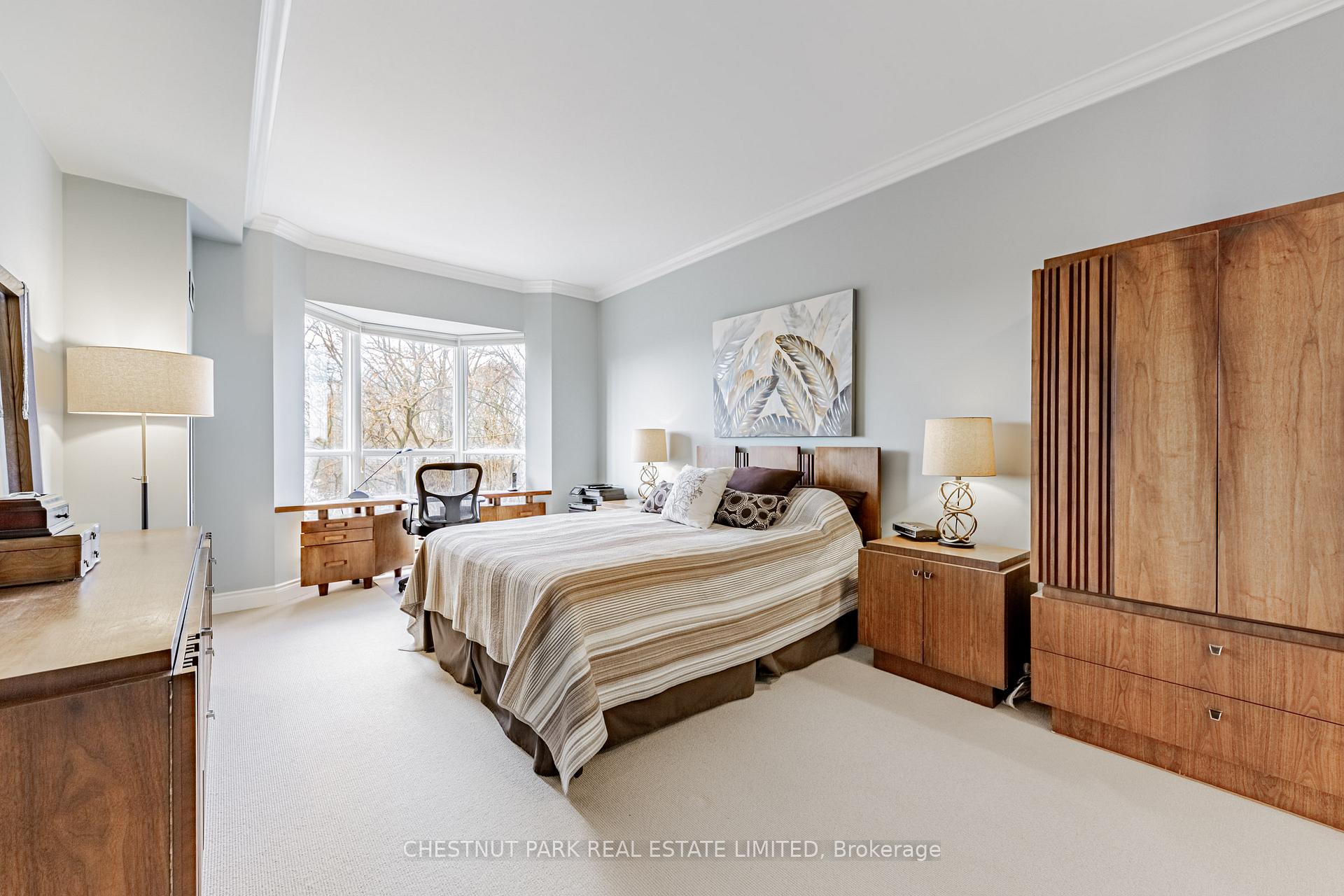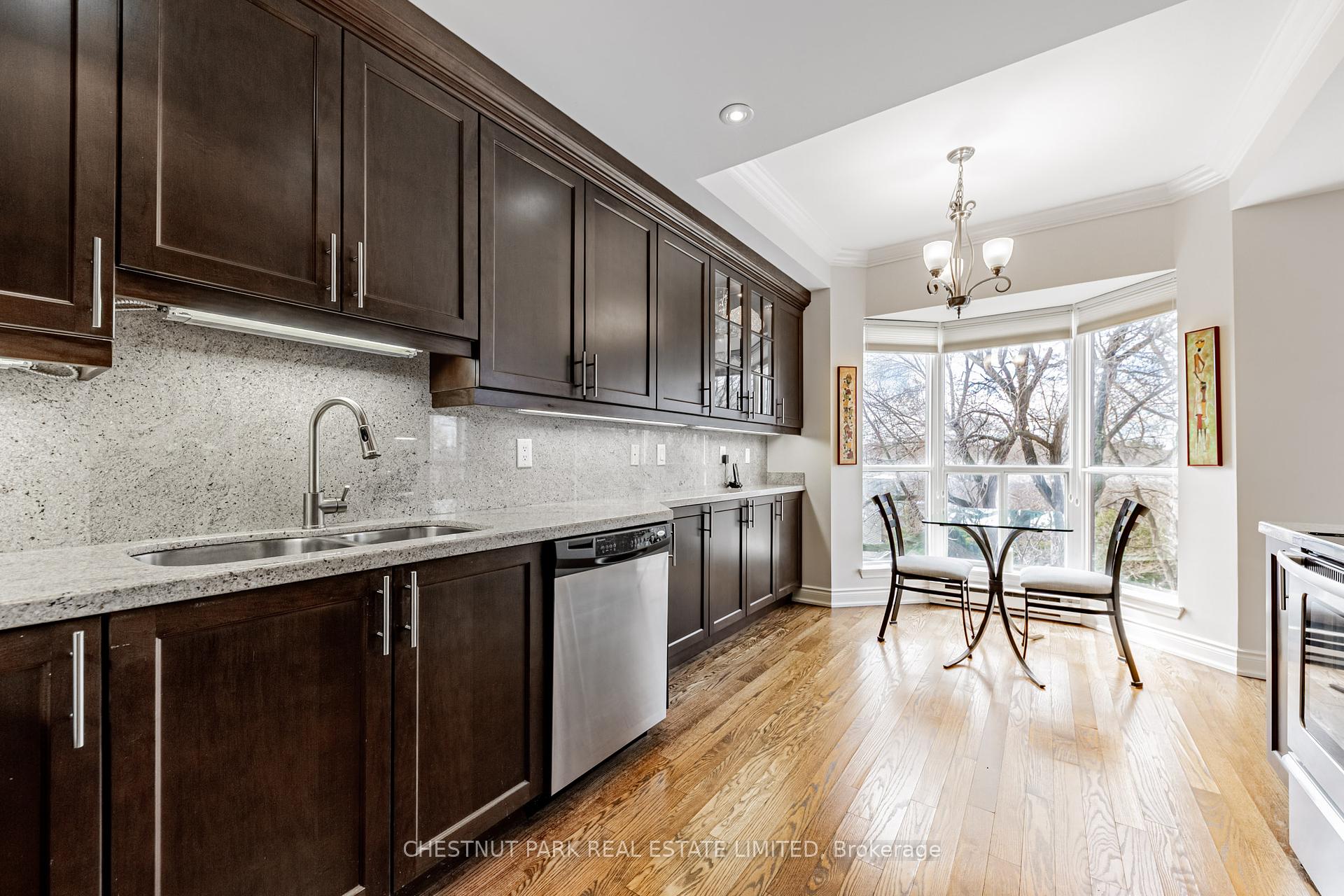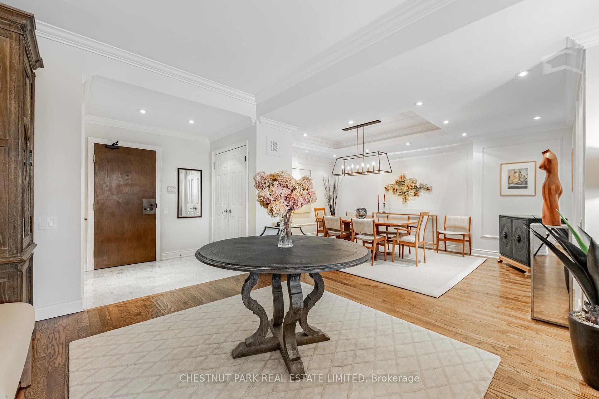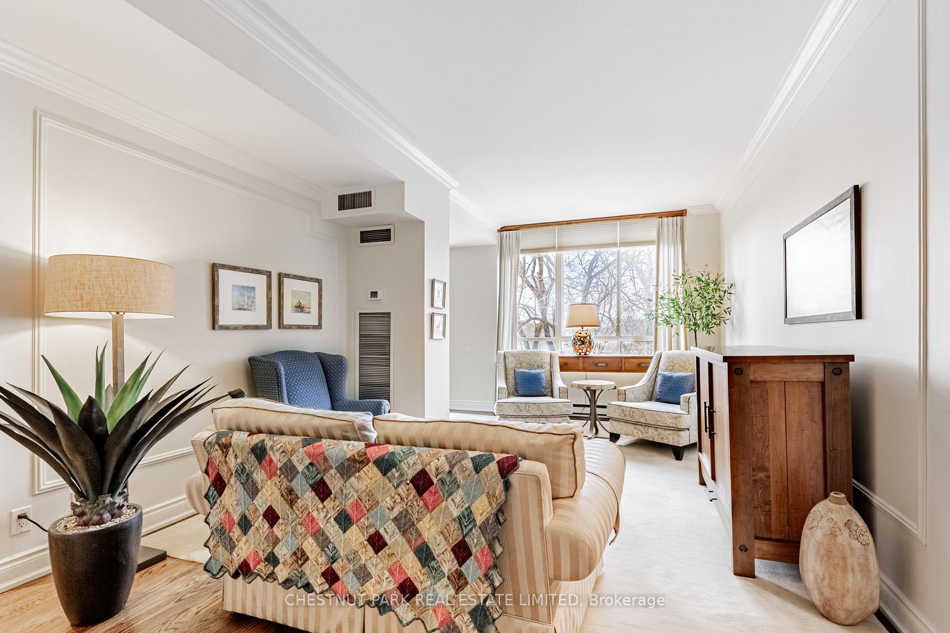 JANET LINDSAY, #1 FOR 25 YEARS (1993 – 2016, 2018 in 2 companies) PROUDLY PRESENTS: Downsizers and professionals have been eagerly awaiting this captivating open-concept, 2 Bedroom with its spectacular and coveted west vistas in every room over the Duplex Parkette. Serene, expansive and bathed in natural light, the exceptional day and night panoramic views enthrall. Designer renovated and truly home-size, this will accommodate all you desire! Luxury abounds in this smart, light-filled & beautifully proportioned layout, with its wood & stone floors, walls of large or bay windows (with custom coverings), marble baths, superbly scaled rooms, ample built-ins and generous storage. The prized floor plan is the ultimate in privacy-enhancing delight with its graceful foyer, stunning open Living Room, adjoining Den (depending on furniture placement), family-size Dining Room (easily seating 10), modern bright Kitchen, Breakfast bay & laundry all separate from the Bedroom wing. Just see the photos for a tiny glimpse of this outstanding home. Convenience, glamour and elegance are treasured in this iconic Lawrence Park landmark. Ideally situated at the vibrant Yonge and Lawrence hub, opposite the lush Alexander Muir Memorial Gardens Park, with its magnificent plantings, woodland trails, tennis and lawn bowling, this quiet mid-rise of just 9 storeys and 72 suites offers exclusivity and superior value in every way. A widely-admired and envied showpiece, the Residences of Muir Park makes transitioning from a large home a breeze. Top-flight building amenities include 24 hour Concierge and security system, visitor parking, gym, manicured landscaping, indoor pool, party room and rooftop deck all just an easy stroll from the lovely boutiques, elegant shops and fantastic subway system. The subway easily whisks you north or south and the portico-like drive provides covered protection in all weather. With 2 car parking (1 with EV charger), substantial visitor parking and separate locker this will steal your heart.